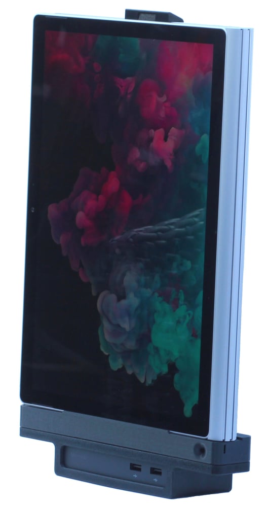 - Mounting cage for the Microsoft Dock 1 or Dock 2 electronics - clip-in your own electronics (note: this option blocks the built-in miniDisplayport on Surface Book 1 and the USB-C port on the Surface Book 2/3)